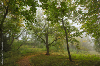 misty green forest