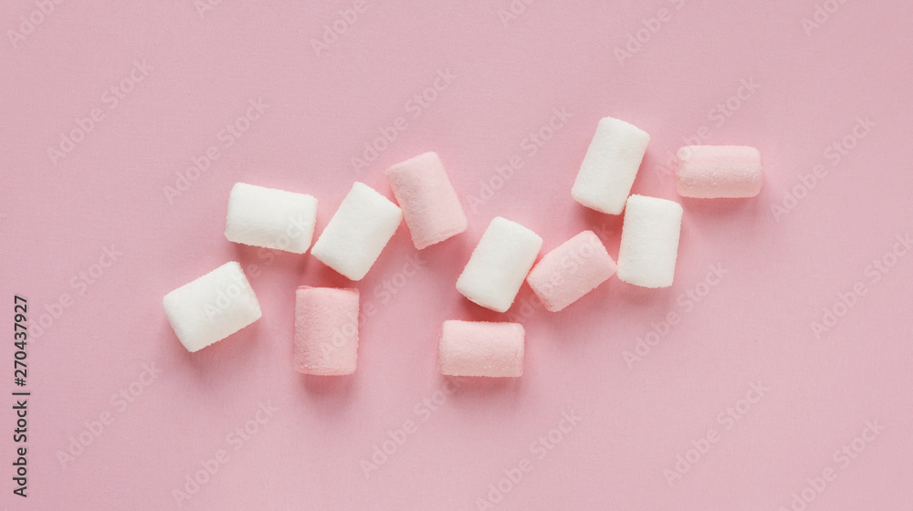 marshmallows scattered on a delicate pink background