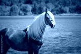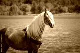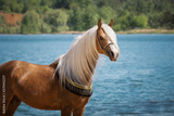 Portrait of a chestnut Arabian horse with a long mane on natural summer background