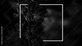 Moonlight on the leaves in the forest, a ray of light in the dark. Blue neon. Nature at night. White frame, poster