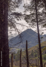 Amazing pine trees at Buttermere on spring afternoon, Buttermere, Cumbria, UK