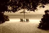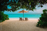Two beach chairs on tropical vacation at sea