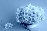 White jasmine flowers in the gift box on the blue background.Copy space.