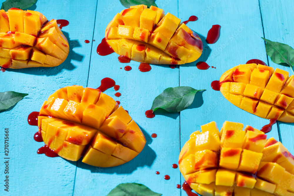 Mexican snack: Cutted tropical mango fruit with chilli "chamoy"