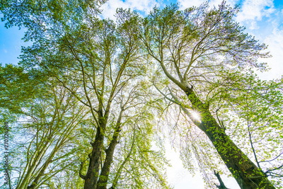 Beautiful trees branch on blue sky .
