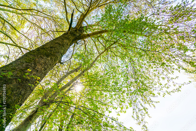 Beautiful trees branch on blue sky .