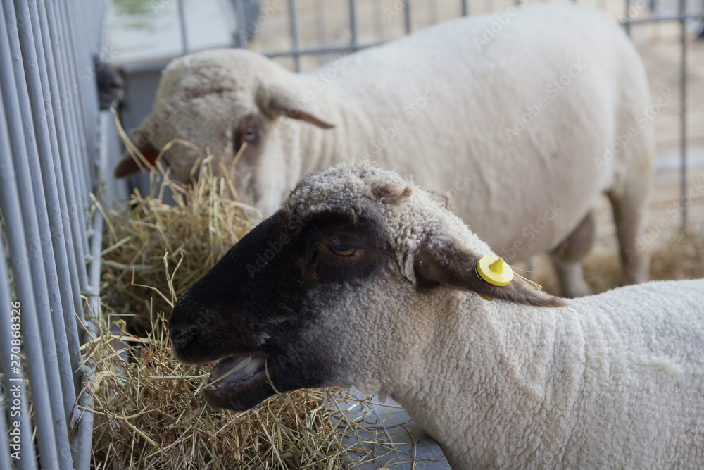 Sheep on the farm are lying on the floor of the barn. Agriculture