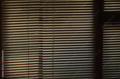 Blinds on the window, sunlight breaking through the blinds, dark room