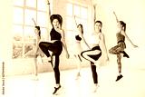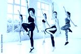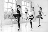 A group of people jumping to dance in a dance class. The concept of sports, a healthy lifestyle, fitness, stretching and dancing