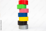 Set of multicolored scotch Tape on white background. sticky tape, adhesive pieces.