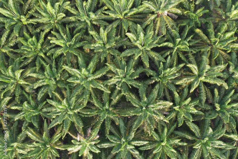 Palm oil trees in plantation. Aerial photo