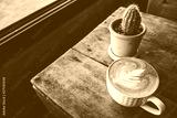 A cup of hot milk coffee (Latte coffee or Cappuccino coffee) on the wooden table in coffee shop.
