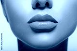 Beautiful lips macro. Beauty. mouth. makeup. Closeup Model Peach Color in Studio. - image.