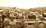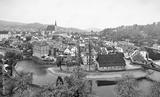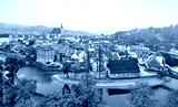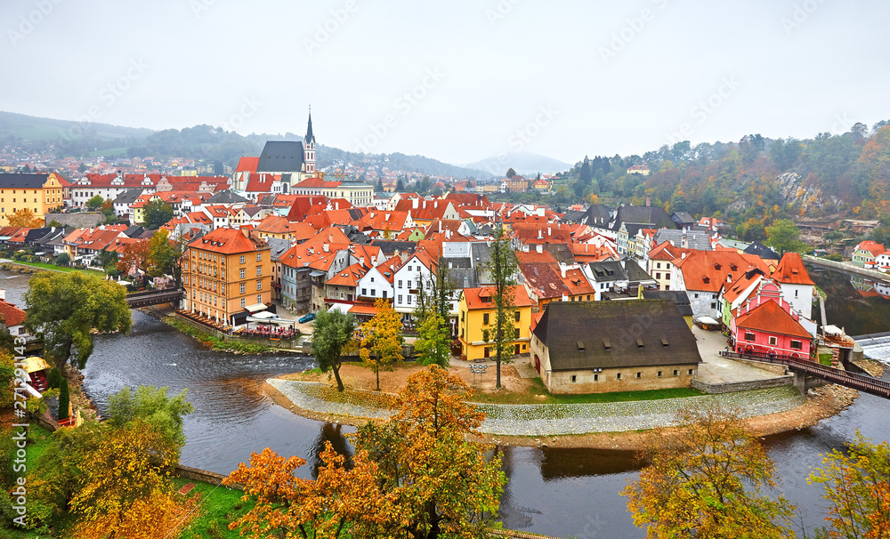 Cesky Krumlov river Vltava autumn Czech Republic. Stock photo.