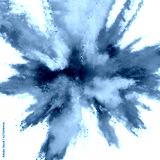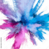 Colored powder explosion on a white background. Abstract closeup dust on backdrop. Colorful explode. Paint holi