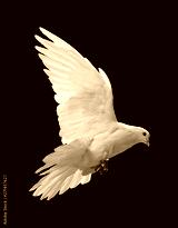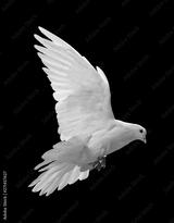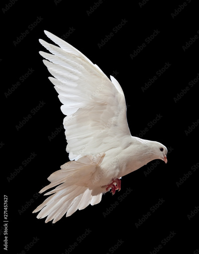 A free flying white dove isolated on a black