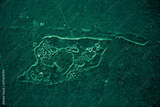 Vintage green background. Rough painted wall of emerald color. Imperfect plane of virid colored. Uneven old decorative toned backdrop of green tint. Texture of emerald hue. Ornamental stony surface.