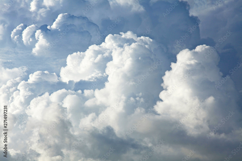 A huge cumulus and cumulonimbus clouds on the blue sky background