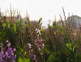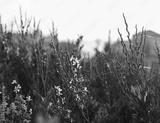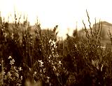 tamarix flowers against bright sun light by the sea