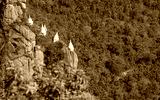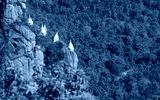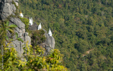 Group of floating pagodas at the mountain edge in temple of Wat Chaloem Phra Kiat, One of the most tourist attraction place in Lampang province of Thailand.
