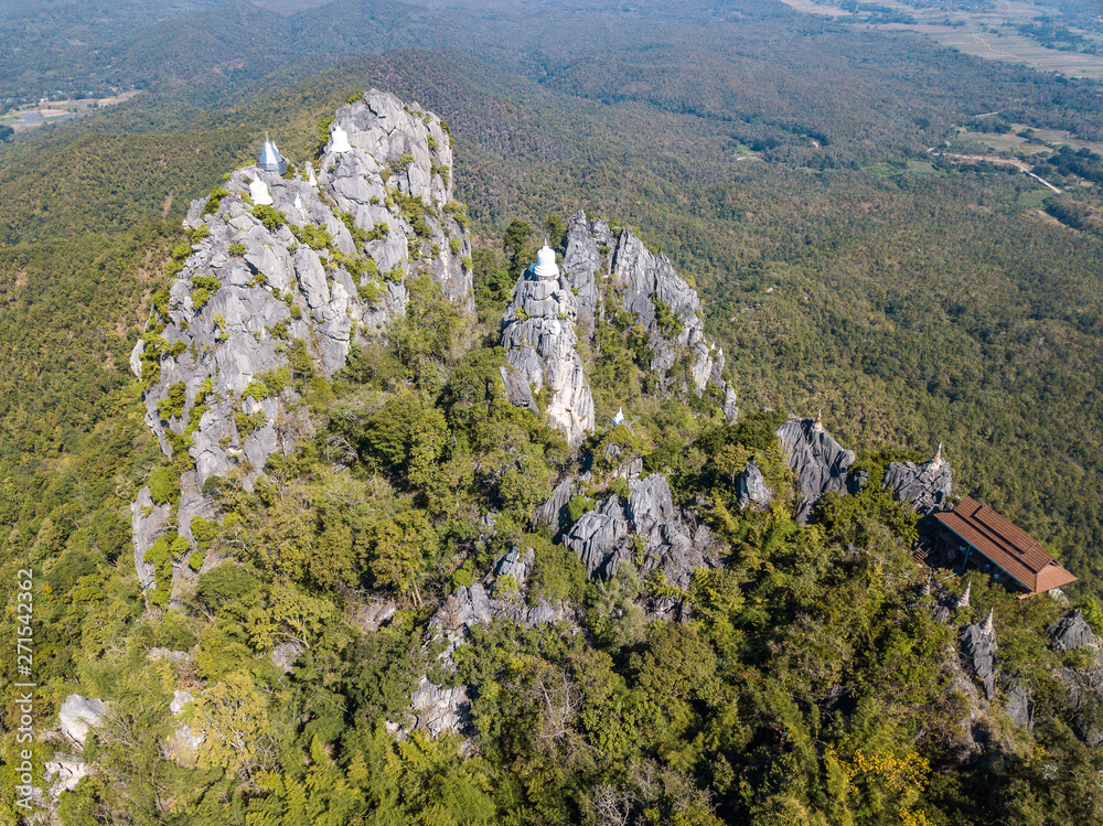 Beautiful aerial view of the floating pagoda in temple of Wat Chaloem Phra Kiat, One of the most tourist attraction place in Lampang province of Thailand.