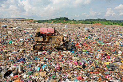 Plastic pollution crisis. Huge landfill garbage dump in Malaysia