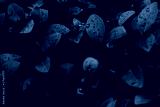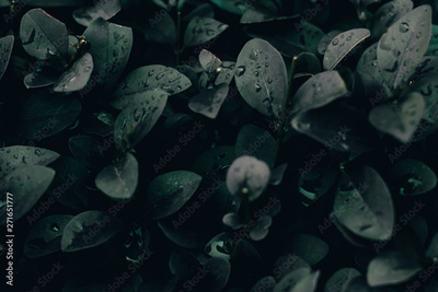 Dark natural background of small sharp leaves with water droplets on top of them – Lush spring vegetation after a heavy rain