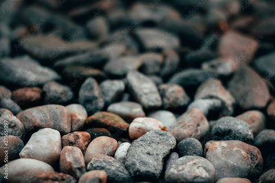 Small rounded grey gravel used as a raw material for the construction of different structures – Abstract background of natural smooth pebbles