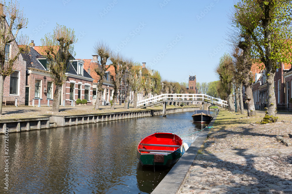 Sloten canal view, a medieval city in the Netherlands, province Friesland, region Gaasterland. It is one of the smallest cities of the Netherlands and is a popular place for sports such as sailing.