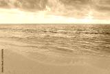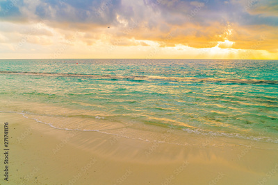 Beautiful sunset with sky over calm sea in tropical Maldives island .