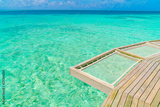 Vacation net seat in tropical Maldives island and beauty of the sea with the coral reefs .
