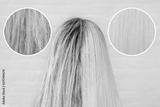 Sick, cut and healthy hair care keratin. Before and after treatment dandruff
