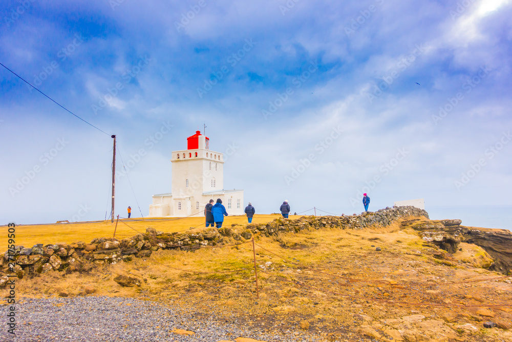 White lighthouse at Cape Dyrholaey, Iceland. .
