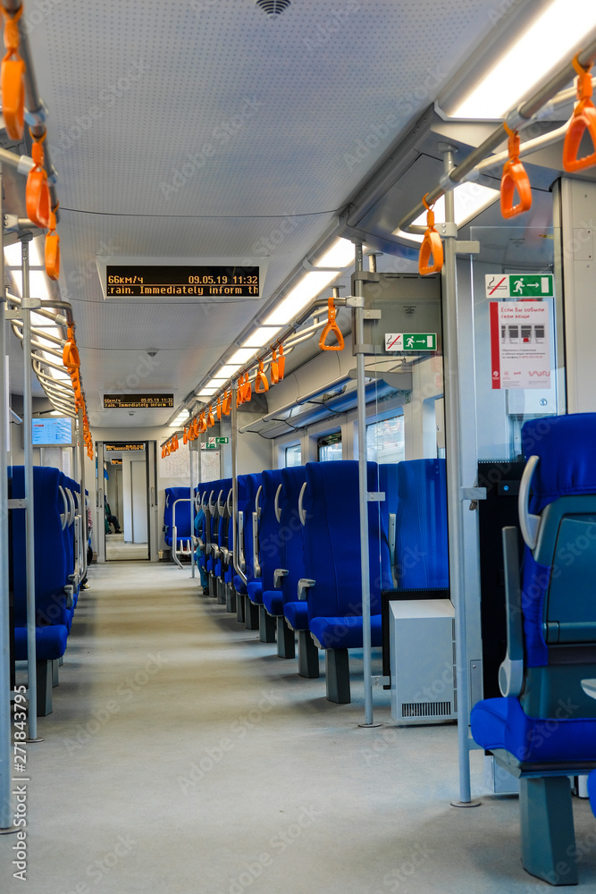 Moscow, Russia - May, 9, 2019: interior of a carrige of subway train in Moscow