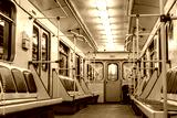 Moscow, Russia - May, 10, 2019: interior of a carrige of subway train in Moscow