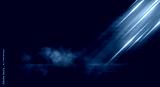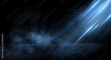 Dark empty scene, blue neon searchlight light, wet asphalt, smoke, night view, rays. Empty black studio room. Dark background. Abstract dark empty studio room texture. Product showcase spotlight back