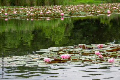 初夏の睡蓮が咲く池