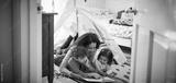 Single Mother Reading With Son And Daughter In Den In Bedroom At Home