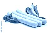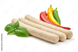 Fresh chicken sausages for barbeque or grill, close-up, isolated on white background
