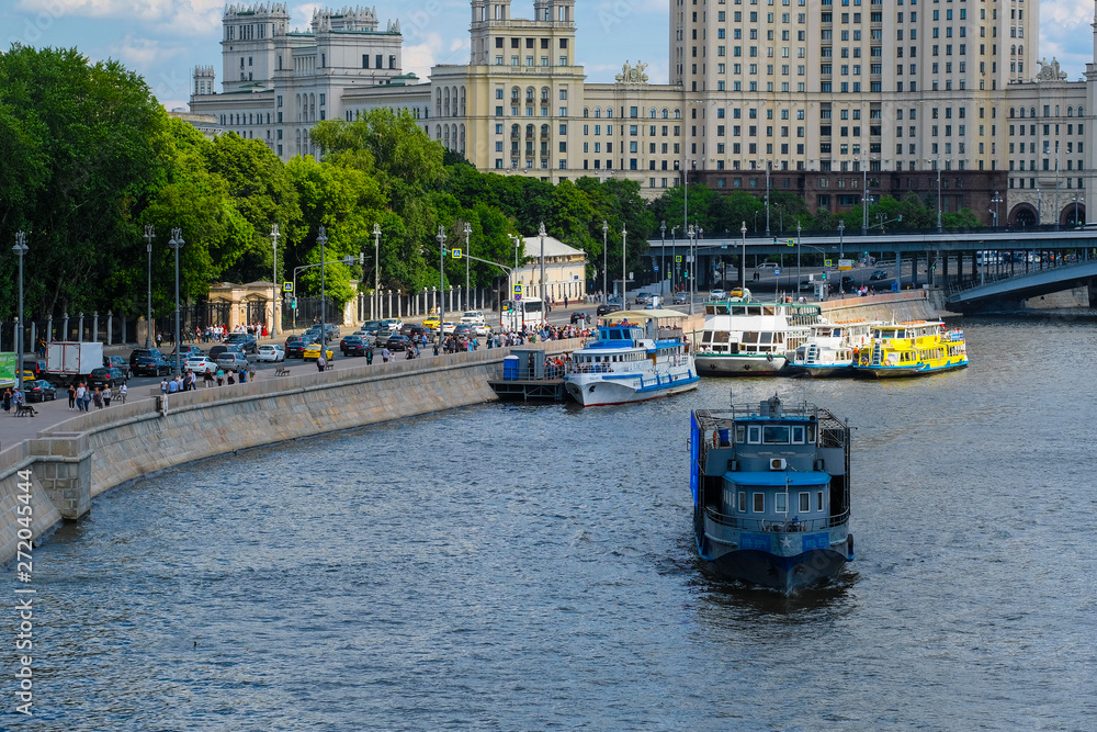 Moscow, Russia - June, 3, 2019: ships on Moscow river in Moscow, Russia