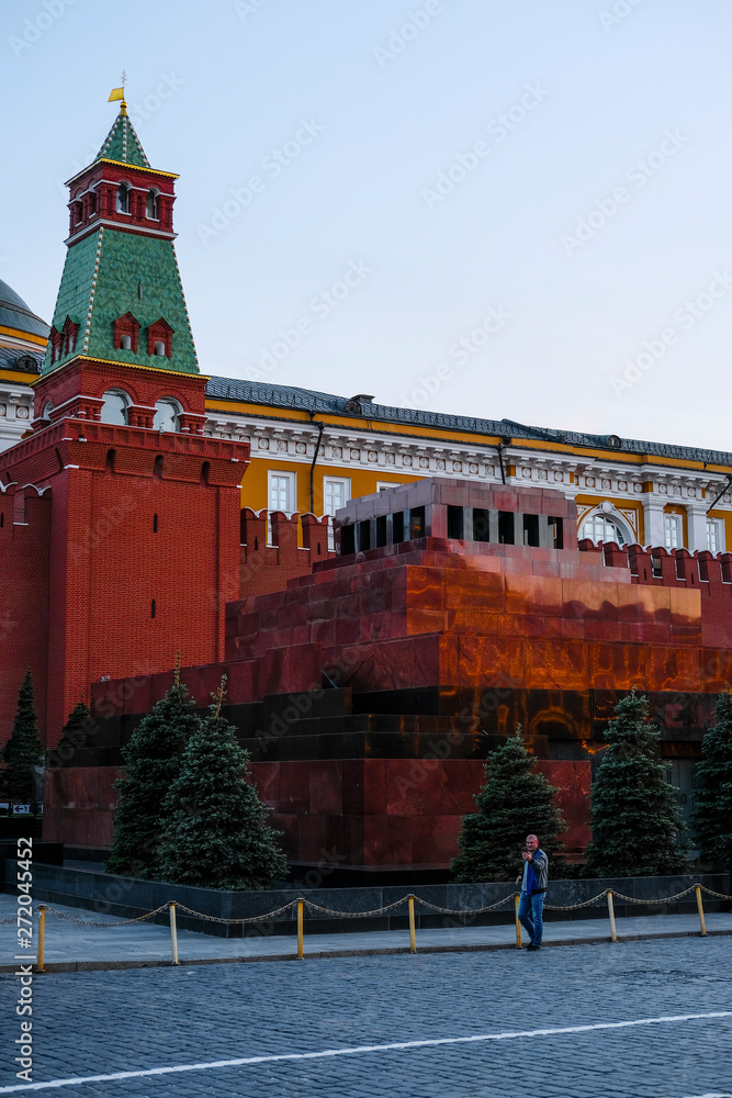 Red Square, Moscow, Russia - May, 20, 2019: Lenin mausoleum on Red Square in Moscow