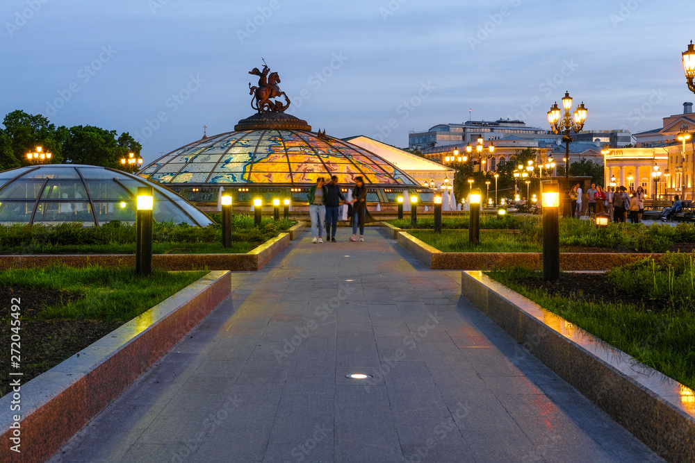 Manezhnaya square, Moscow, Russia - May, 20, 2019: Manezhnaya square in Moscow at sunset
