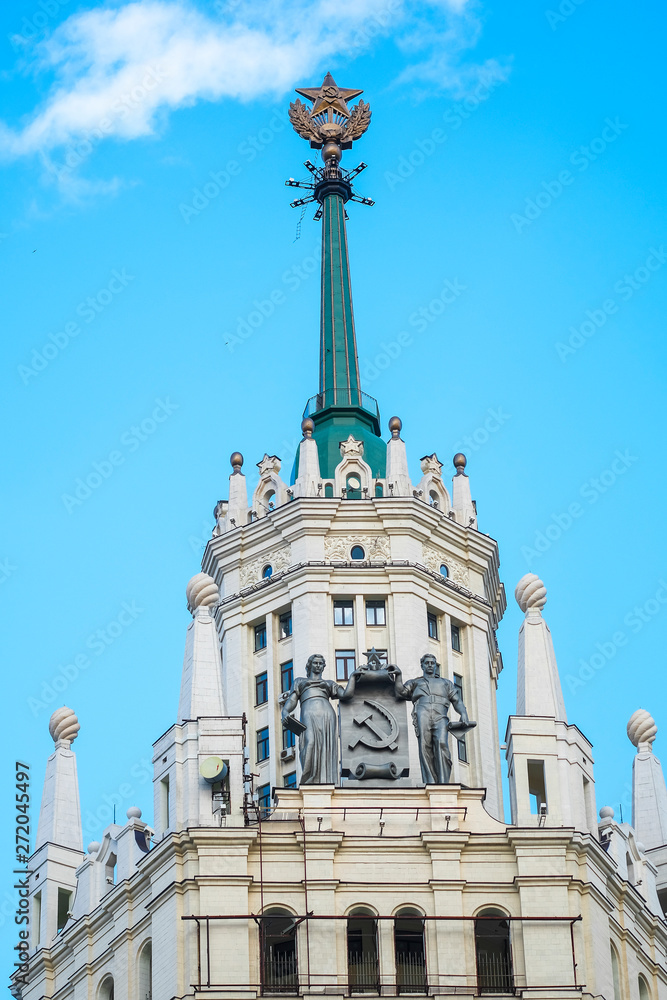 Moscow, Russia - June, 3, 2019: skyscraper on the kotelnichesky embankment in Moscow