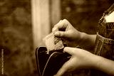 Casual young Asian girl taking 100 Baht banknote out of her purse to pay - Ethnic Thai woman holding Thailand paper currency money cash to pay for street food outdoors in the day