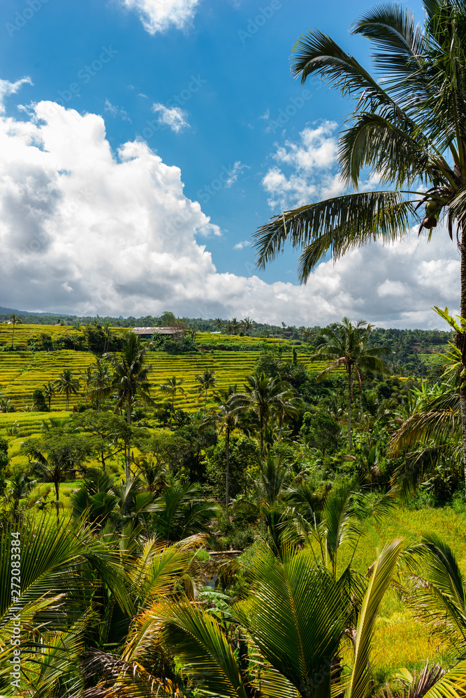 Hills of ripe rice ears on a sunny day. Rice Terraces Landscape.