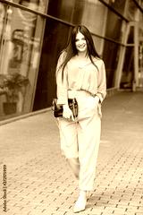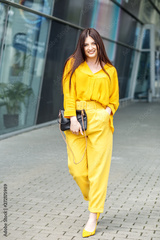 Young beautiful woman in yellow clothes. Concept of lifestyle, business, beauty and fashion.