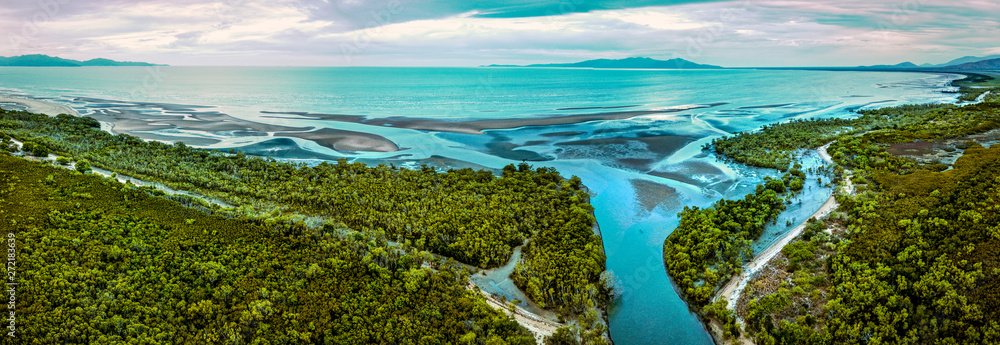 Pink sunrise over the beach and mangroves south of Townsville