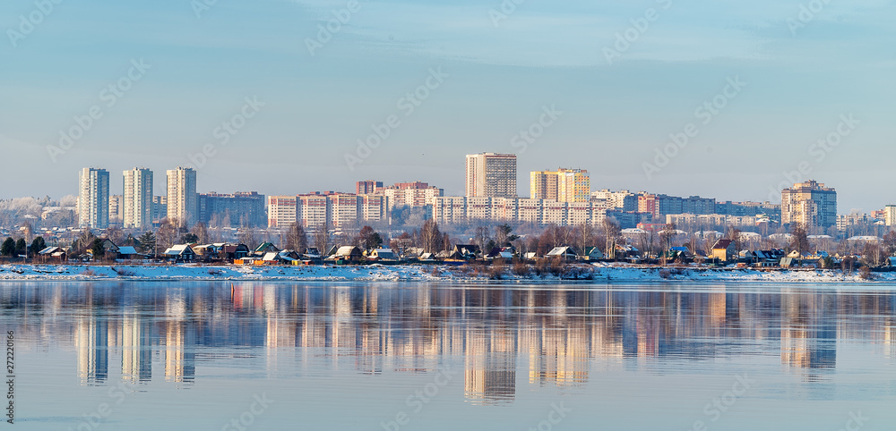 Winter. Beyond the river Kama, one of the areas of the city of Perm.