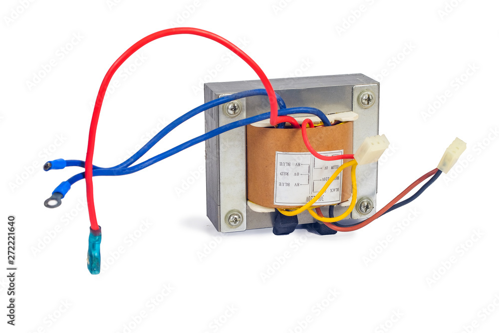 Power transformers for supplying electronic on white background.