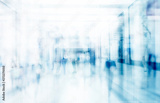 abstract defocused blurred technology space background, empty business corridor or shopping mall. Medical and hospital corridor defocused background with modern laboratory (clinic)